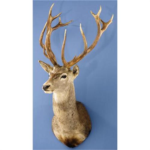 <B>RED STAG SHOULDER MOUNT</B></I><BR> <I>Cervus elaphus scoticus</B></I><BR>This big 16-point record-class Red Stag came from Scotland. He has big main beams with long tines and good mass. The Red Deer is at the top of the list when it comes to Big Game hunting in Europe and this is an exceptional trophy with exceptional taxidermy, measuring 28 inches from the wall and 52½ inches high.<BR><BR><b>Shipping:</b> Requires 3rd Party Shipping (<a target="_blank" href="http://www.heritageauctions.com/common/shipping.php">view shipping information</a>)