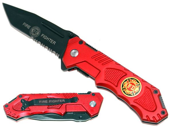 RED TACTICAL SPRING ASSISTED FIRE DEPT DESIGN OPENING K **|**|** RED TACTICAL SPRING ASSISTED FIRE DEPT DESIGN OPENING KNIFE W/CLIP