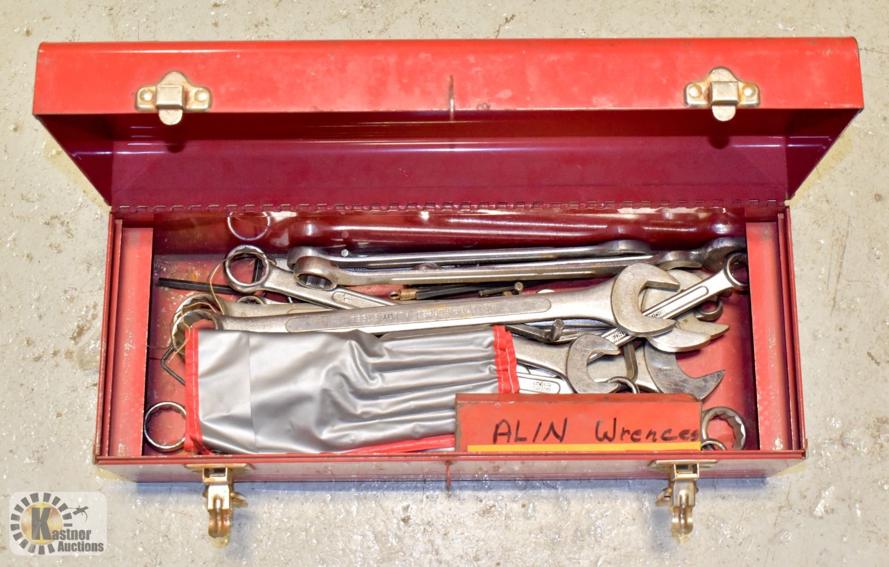 RED TOOL BOX FULL OF WRENCHES