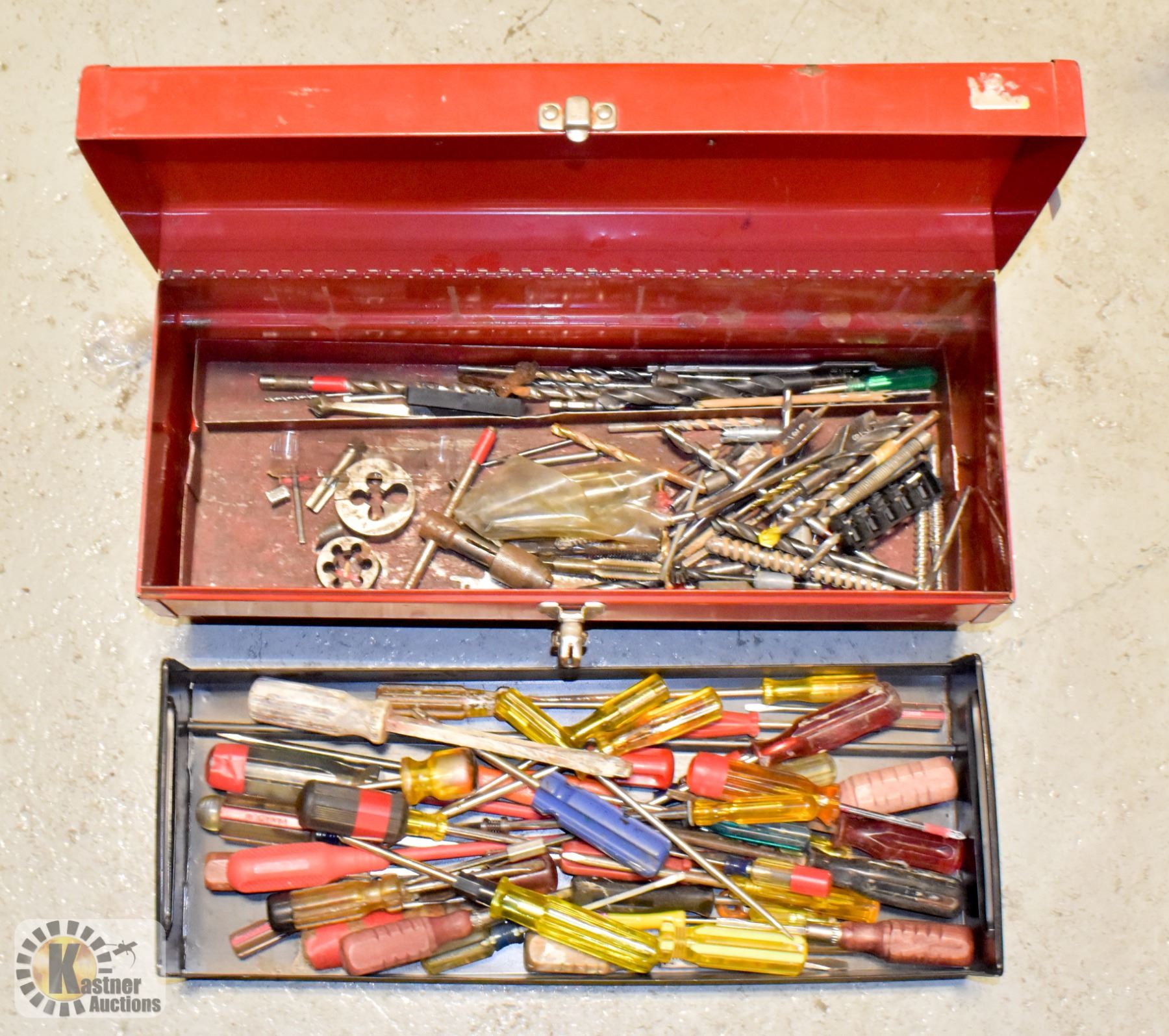 RED TOOL BOX OF 50+ SCREW DRIVERS