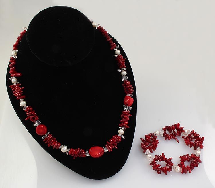 RED TURQUOISE&CORAL 306.36CTW NECKLACE&BREACELET SET **|**|** 18 INCHES LONG NECKLACE AND STANDARD SIZE ELASTIC BRACELET WITH NATURAL RED TURQUOISE & CORAL GEMSTONE ; MSRP: $100