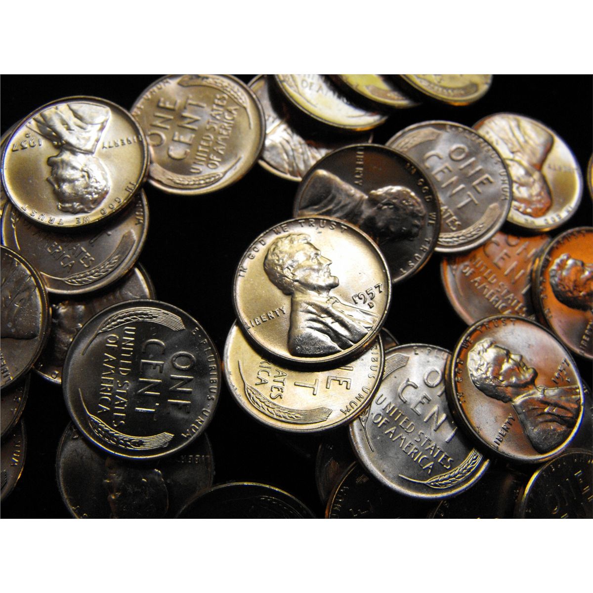 RED UNCIRCULATED WHEAT CENTS 1957 D 50 COINS