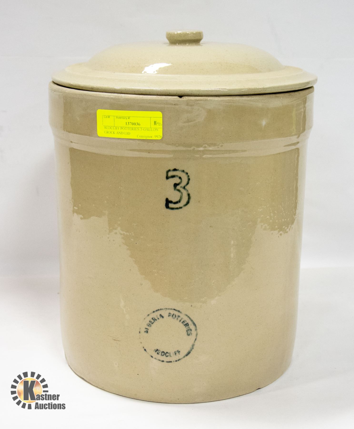 REDCLIFF POTTERIES 3 GALLON CROCK AND LID
