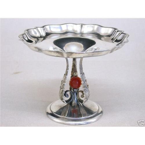 REDLICH & CO. NEW YORK STERLING SILVER COMPOTE OR PEDESTAL BOWL WITH ORANGE STONE OR CARNELIAN IN THE CENTER BASE C. 1910!!
