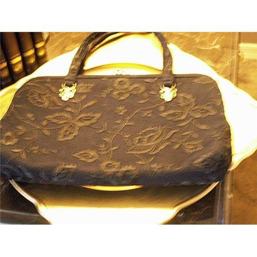 Koret was a favorite of Ava Gardner and many of the other stars during 50's & 60's. The classic elegance of this handbag will take you to the boardroom or the opera. Condition is like new. Color is a dark navy (almost looks black) wool with floral stitched detailing over entire handbag. Don't overlook the beautiful gold tone clasp and decorative handles. The Inside has the divided sections, black and gold satin, with small change purse attached with an elegant chain. Craftsmanship is superior.<p>Measurement: 11-1/2" x 8"