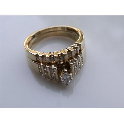 GETTING MARRIED THIS SUMMER? It's time to take advantage of this very special estate diamond ring offering that is so very affordable the budget conscious couple just starting out in life.<p>Vintage 60's ladies hand assembled diamond Marquise bridal set. Condition is like new. Comes with current GIA Appraisal. The rings are soldered together to keep the diamond band and engagement ring from turning. Ring size: 6 ($30 extra to resize). 0.13 cts weight.<p>Prong set marquise-shaped cut diamond with 25 channel set round brilliant cut diamonds appx. 0.33 cts. <p>Total Weight of Diamonds: 0.46 Weight Wedding Ring Set: 6.20 grams.<p>Appraisal: $1,000. Total Carat weight: Clarity I-1-I-2<p>Ask about our layaway plan.