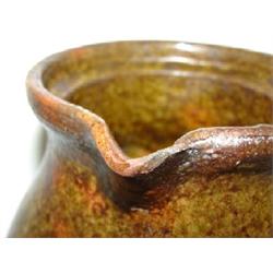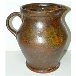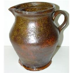 REDWARE HANDLED PITCHER. Chipping around bottom of base. Small chip at spout. 6.5” H