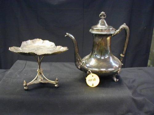REED & BARTON SILVER PLATE 10 3/8in FTD. TEA POT #3610 W/ FLORAL RELIEF SPRAYS EXCELLENT, (1) REED & BARTON 5 1/2in SILVER PLATE C.1870 LILY PAD DESIGN FTD. DISH, 2 PC