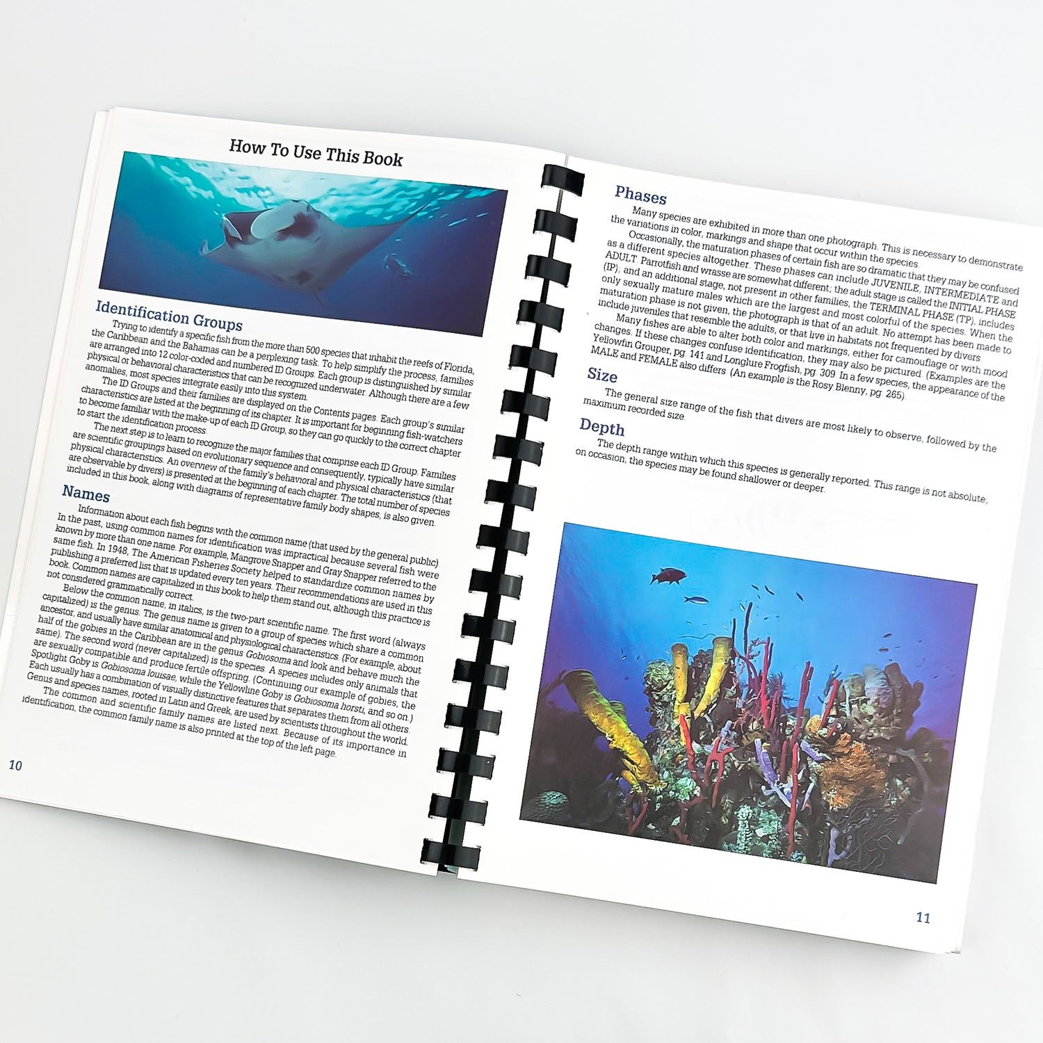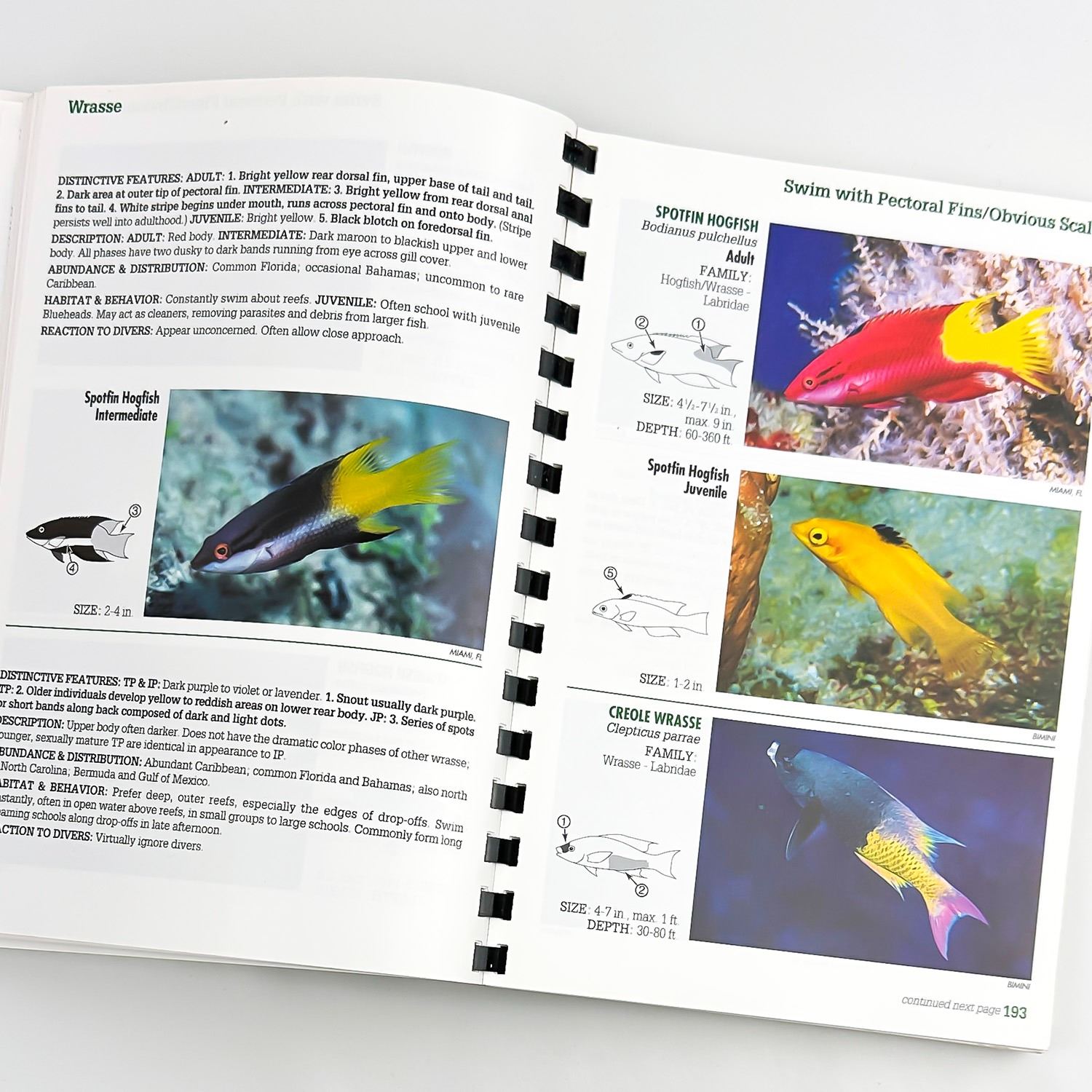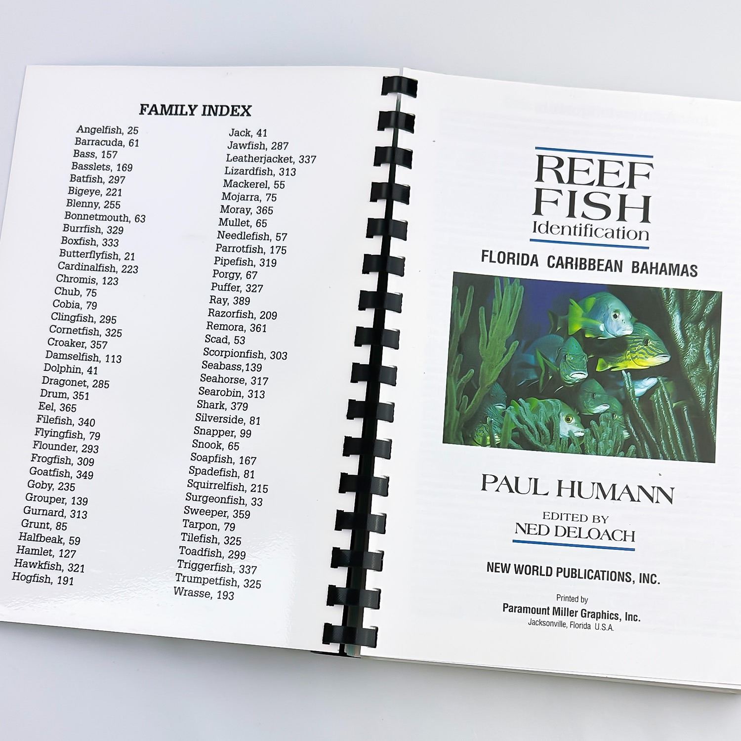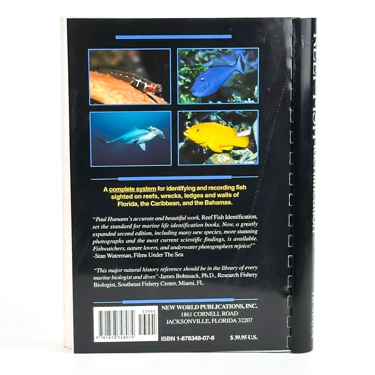 #8542 - REEF FISH IDENTIFICATION - FLORIDA CARIBBEAN BAHAMAS - 670 PHOTOGRAPHS. A COMPLETE SYSTEM FOR IDENTIFYING AND RECORDING FISH SIGHTED ON REEFS, WRECKS, LEDGES AND WALLS OF FLORIDA, THE CARIBBEAN, AND THE BAHAMAS. PLASTIC SPIRAL BOUND BOOK WITH CARD-STOCK COVER. OCEAN FISH REFERENCE BOOK BY PAUL HUMANN. COPYRIGHT 1997 NEW WORLD PUBLICATIONS, JACKSONVILLE, FLORIDA - 422 PAGES.