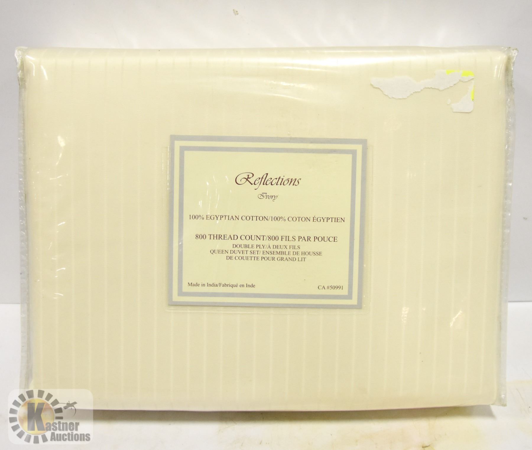 COUNT DOUBLE PLY QUEEN SIZE. INCLUDES QUEEN DUVET COVER + 2 STANDARD SHAMS