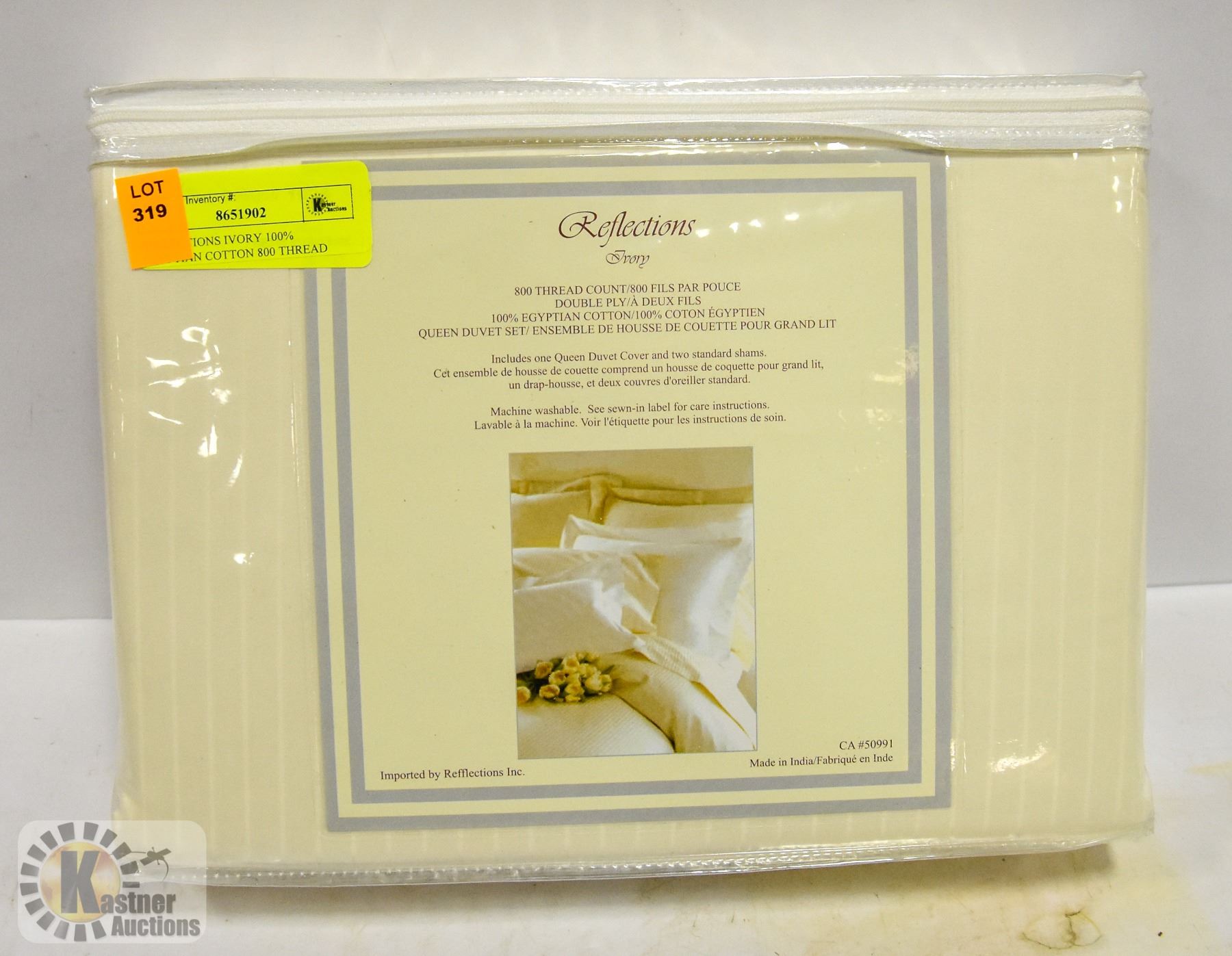 COUNT DOUBLE PLY QUEEN SIZE. INCLUDES QUEEN DUVET COVER + 2 STANDARD SHAMS