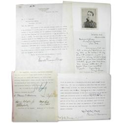 <b>742. REFORMERS </b> A nice grouping of four uncommon reformers, includes: <b>THOMAS G. SHEARMAN</b> (known for defending Henry Ward Beecher in his trial), two D.S. 1p. 8vo., each., his signatures on the bottom of a proof of a speech and a partial letter. Lightly soiled, otherwise good; <b>OSWALD GARRISON VILLARD</b>, T.L.S. on his personal letterhead, 1p. 4to., New York, Nov. 29, 1911, to an editor requesting the honor of his membership in <i>"...a new society for the promotion of efficiency...</i>"; and <b>MARY ELIZABETH LEASE</b>, an A.L.S., 1p. 8vo., Wichita, Apr. 2, 1892, to an editor answering a request for articles. Mounted with a small printed portrait to a vintage album page. Four items, overall very good.<b> $75-100