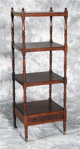 REGENCY MAHOGANY ETAGERE, 52" high, 18" wide, 16" deep, early 19th century, condition: excellent, SHIPPING: See recommended third party shippers. This item can't be packed or shipped by seller.