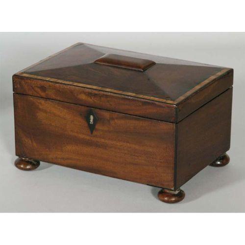 REGENCY MAHOGANY TEA CADDY, with satinwood cr