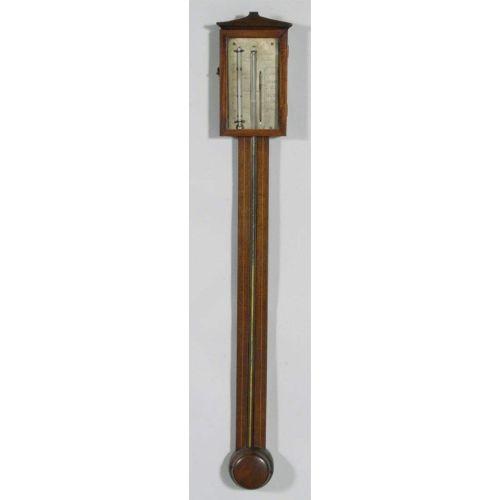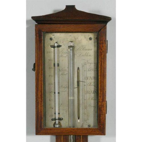 REGENCY STICK BAROMETER signed "De Poncia, Dublin" on a silvered face 37" long, early 19th century CONDITION REPORT: barometer tube discolored/inoperable?, otherwise excellent.