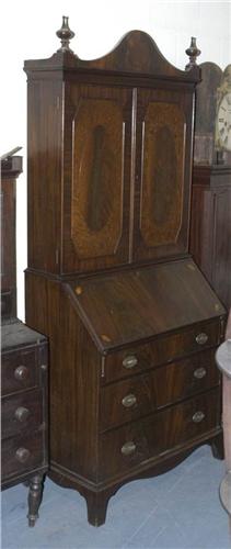 REGENCY STYLE SECRETARY with bookcase top, burled walnut panels, circa 1930, SHIPPING: See recommended third party shippers. This item can't be packed or shipped by seller.,