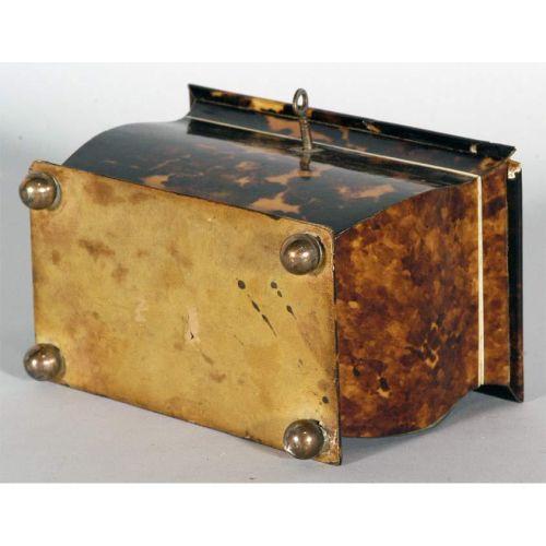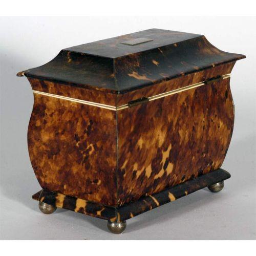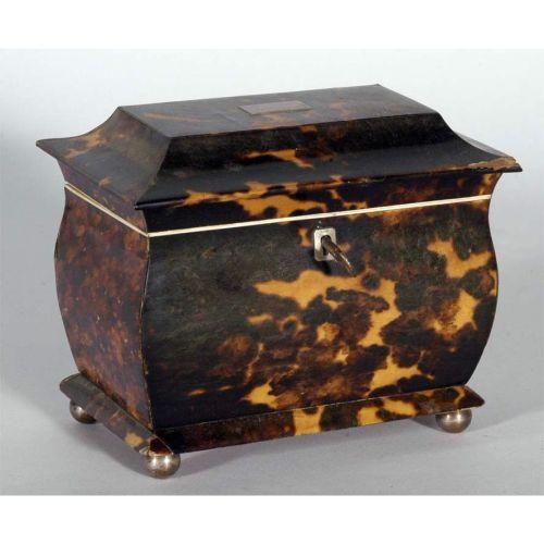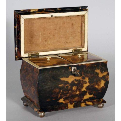 REGENCY TEA CADDY 7 1/2" long CONDITION REPORT: damage to right front corner of lid, otherwise excellent and fitted. PACKING AND SHIPPING: We offer packing (double boxed in most cases) and shipping of this item within the Continental United States by USPS or UPS (our choice- boxes over 30lbs or oversized may be recalculated based on buyer's location), NOT INCLUDING INSURANCE (it will be added when we know the sales price) for $30