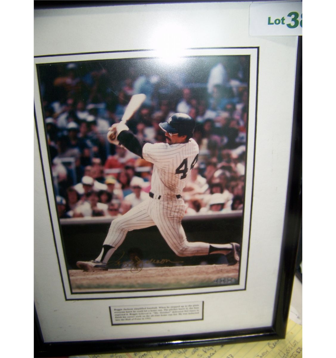 REGGIE JACKSON, NEW YORK YANKEES HAND SIGNED COLOR PHOTOGRAPH, FRAMED