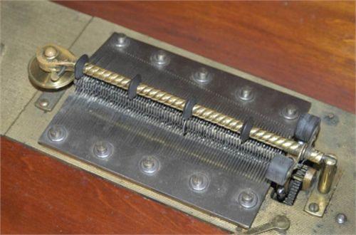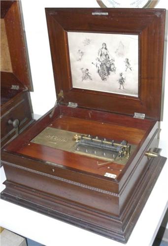 REGINA MAHOGANY MUSIC BOX playing 15 1/2" disks, double comb, no broken teeth, main spring broken, no crank, circa 1900, SHIPPING: See recommended third party shippers. This item can't be packed or shipped by seller.