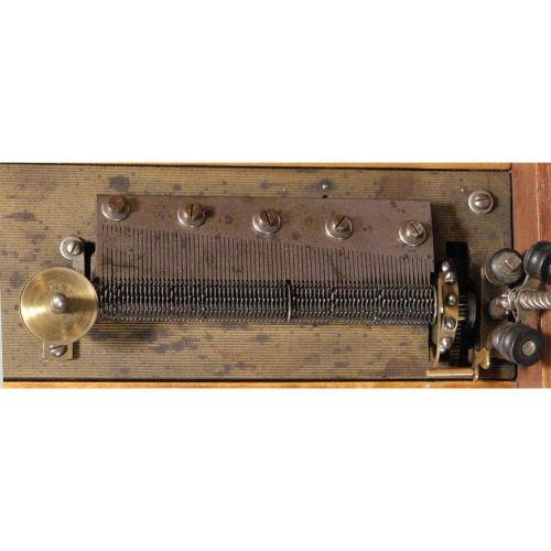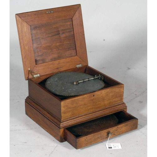 REGINA MUSIC BOX with (12) 15 1/2" disks, mahogany case, circa 1900, CONDITION REPORT: refinished case with some molding losses, mechanism in good order and plays well.