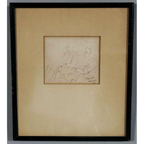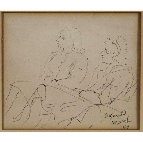 1 REGINALD MARSH Study of Two Seated Women 3 3/4"x 4 3/8" ink on paper signed and dated 1947 CONDITION REPORT: excellent with some mat burn. PACKING AND SHIPPING (excluding insurance) by Fairfield Auction to points within the Continental U.S.A. and Canada (all other international must be handled by 3rd party shipper) $20.