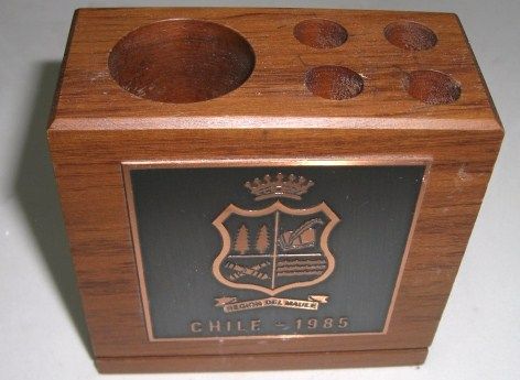 REGION DEL CHILE 1985 OFFICE DESK PEN HOLDER *SOLID WOOD & COPPER* SIGNED *DESMADRYL CHILE*!! ITEM CAME OUT OF SAFE!! ***Coin, Currency & All Items Listed in this auction - Grades, Conditions and Values are not Safe Deposit Coins LLC Responsibilty. Grades, Condition and Values are determined by Consigner(s) & Buyers