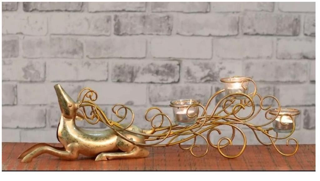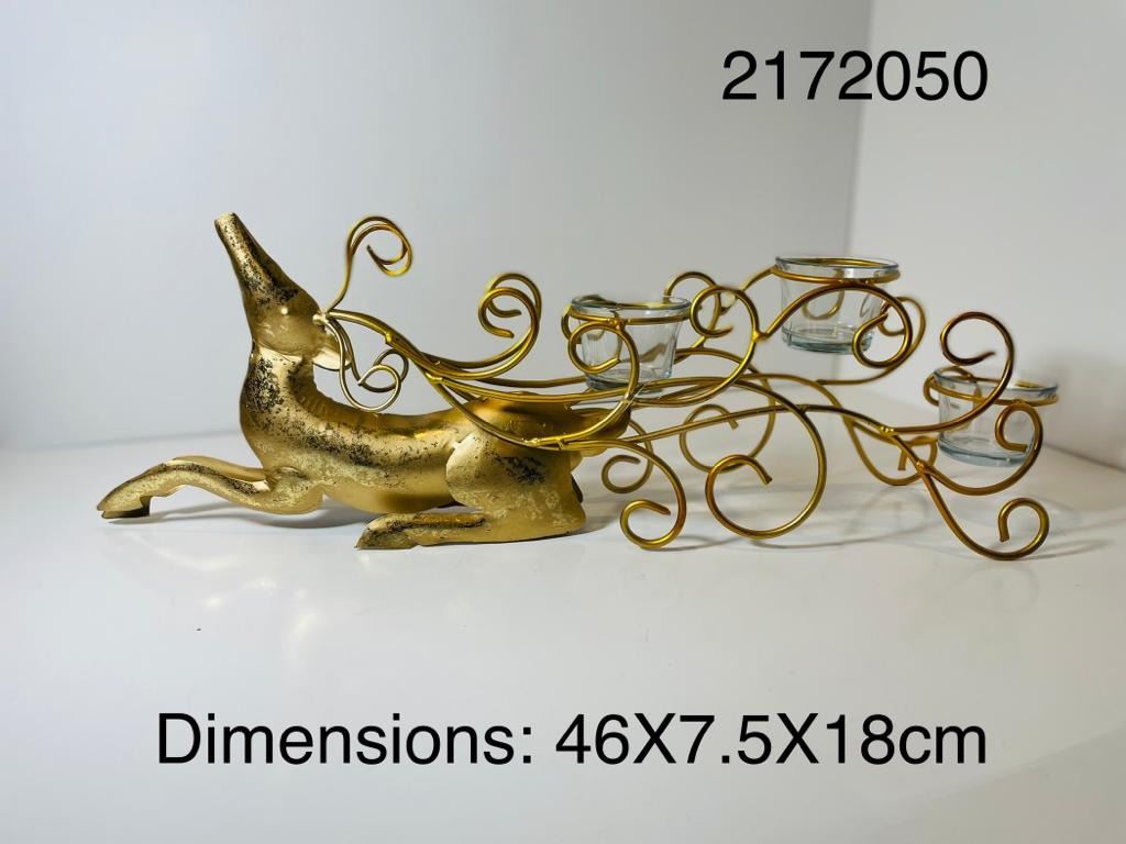 REINDEER METAL WITH GLASS CANDLE HOLDER