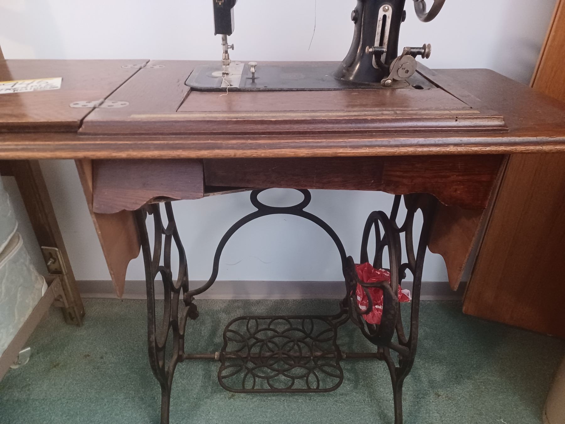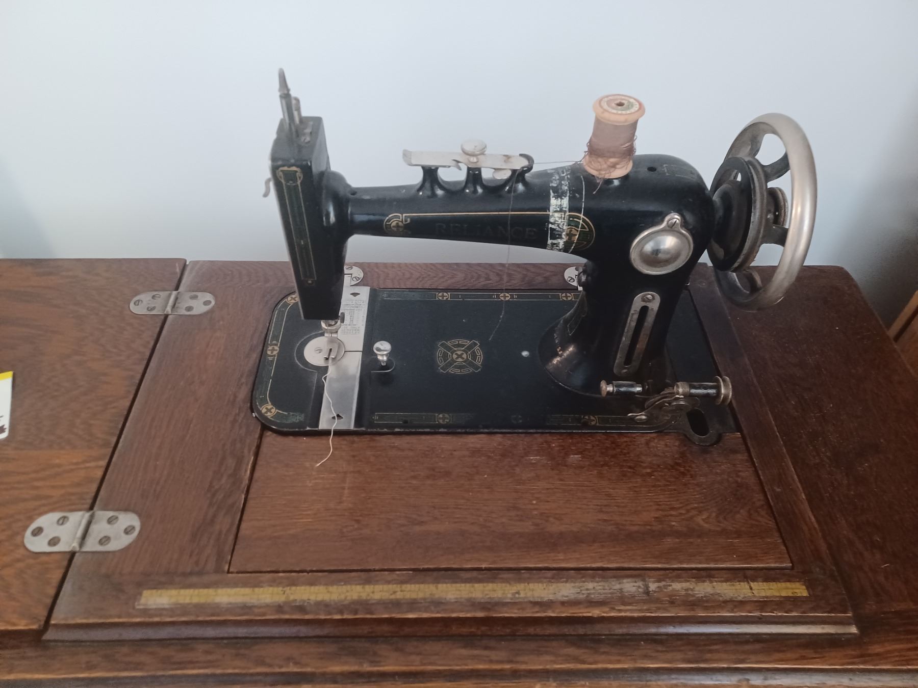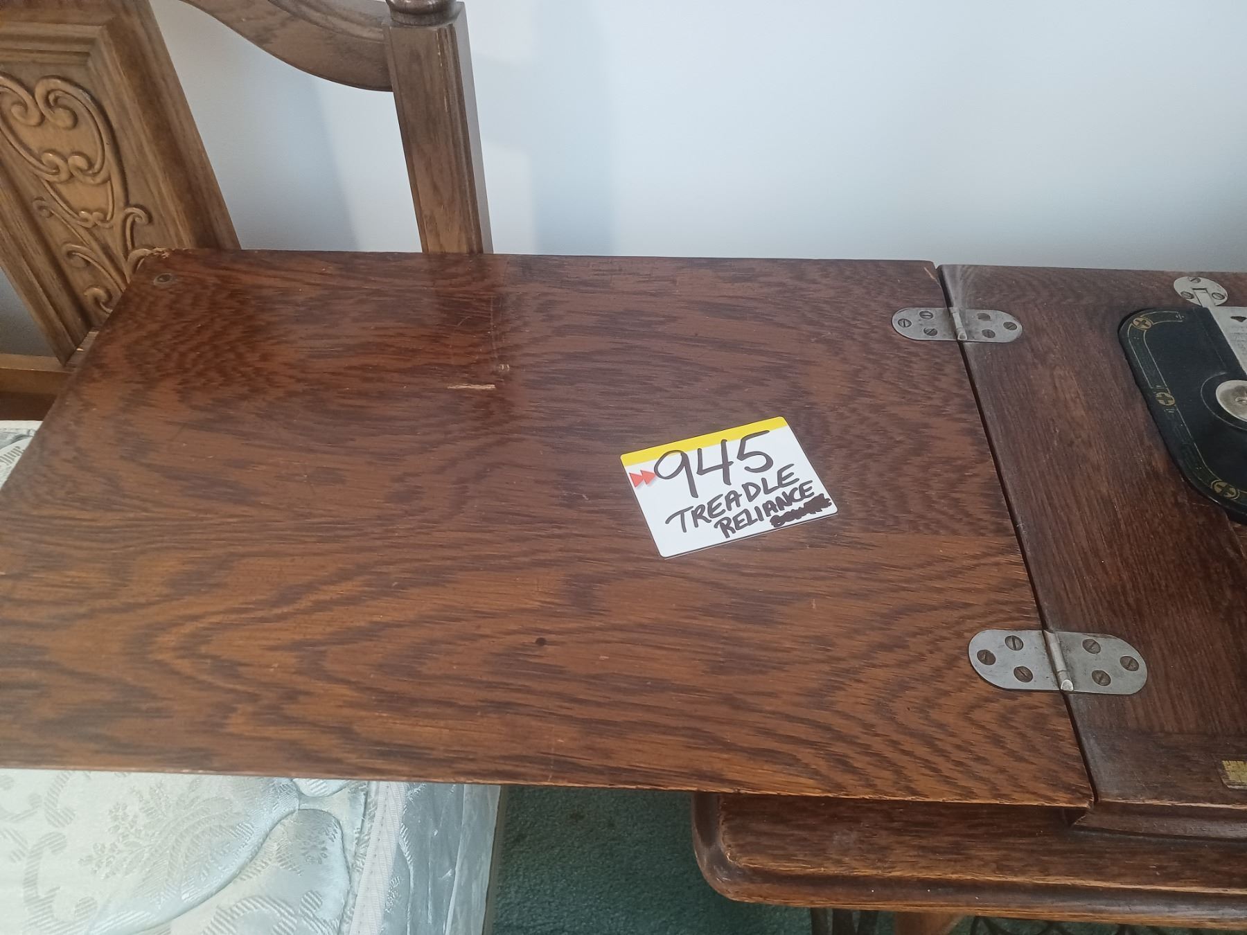 RELIANCE' TREADLE SEWING MACHINE IN CABINET.**SEE PHOTOS-EXCELLENT CONDITION-**