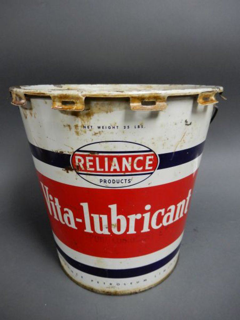 RELIANCE VITA-LUBRICANT 25 LB GREASE PAIL WITH LID - SOME WEAR LOCATION: LOWER RIGHT