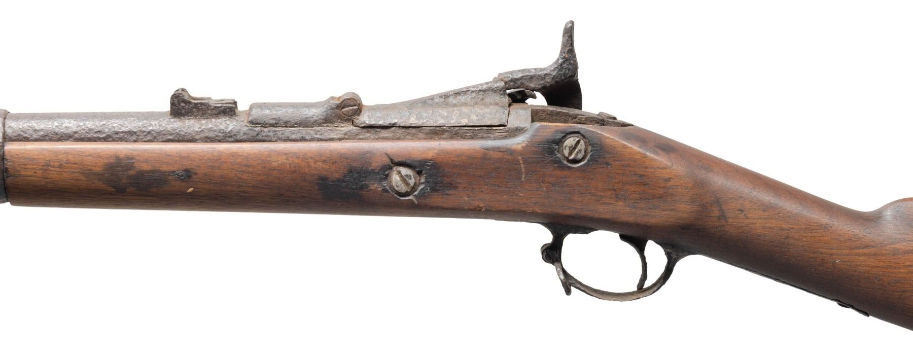 Poor: No original finish, possibly some major parts replaced, loose but functional mechanics, active or heavy external rust, poor bore with heavy pitting and little or no rifling visible.