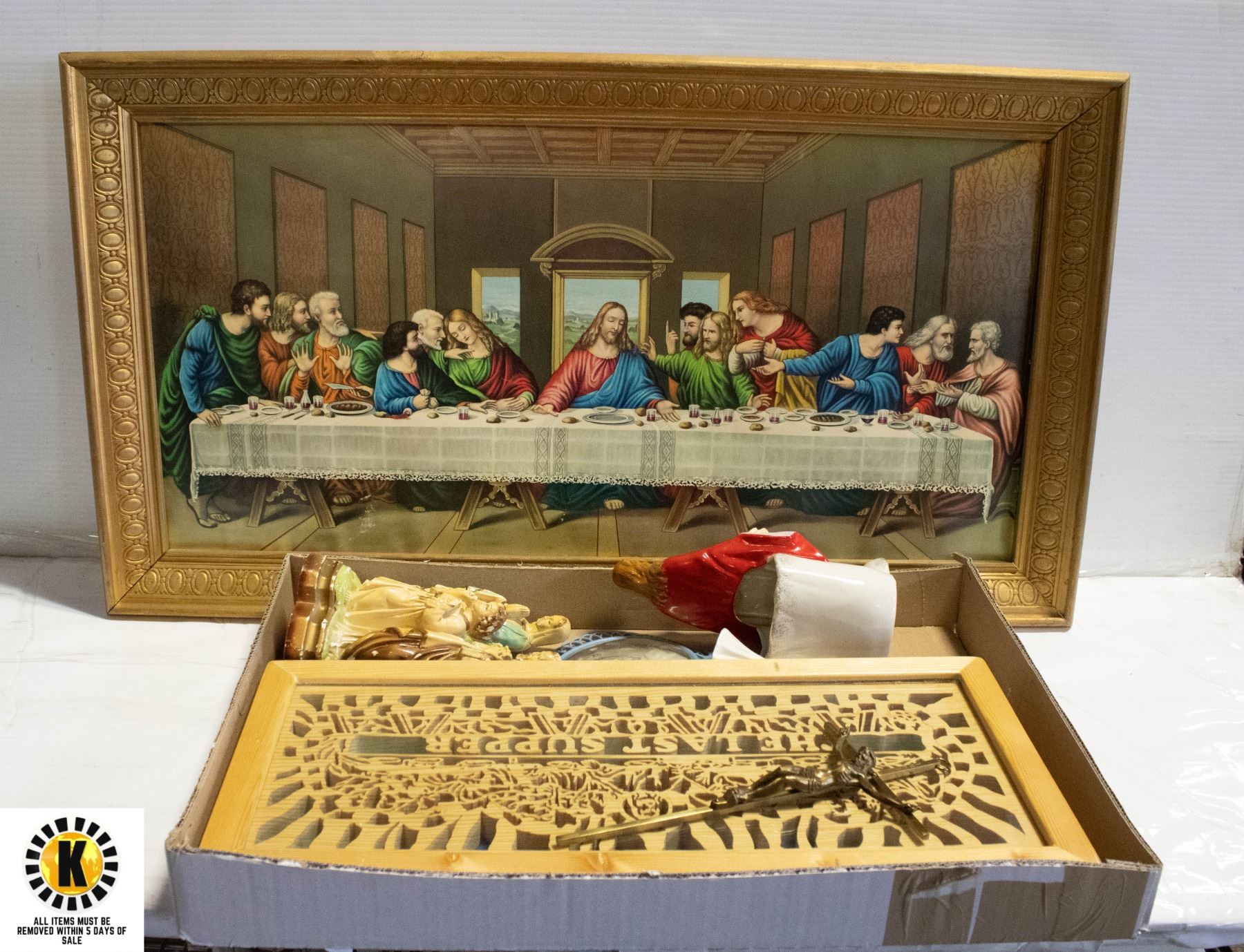 RELIGIOUS ITEMS FRAMED LAST SUPPER PIC, ANTIQUE