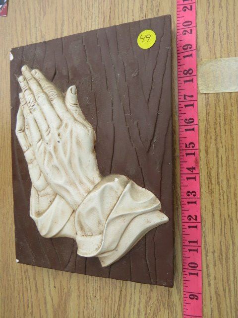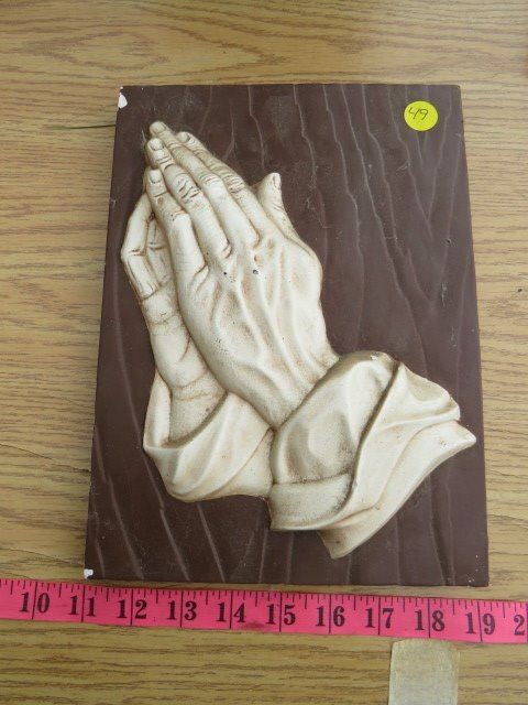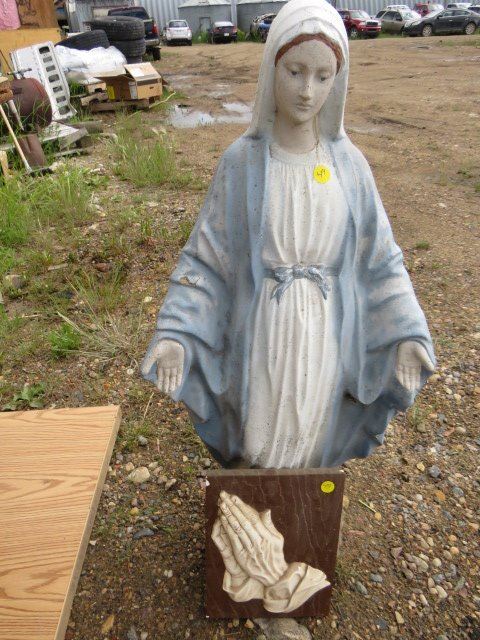 RELIGIOUS STATUE AND PLAQUE (VIRGIN MARY AND PRAYING HANDS) *32.5" TALL X 14.5" WIDE*