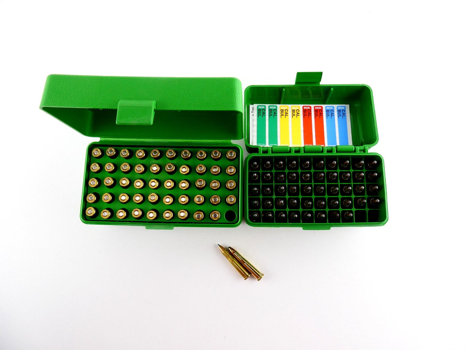 LOT INCLUDES; APPROX. (99) RNDS, (2) MTM CASE-GARD RS-50 PLASTIC AMMO BOXES.