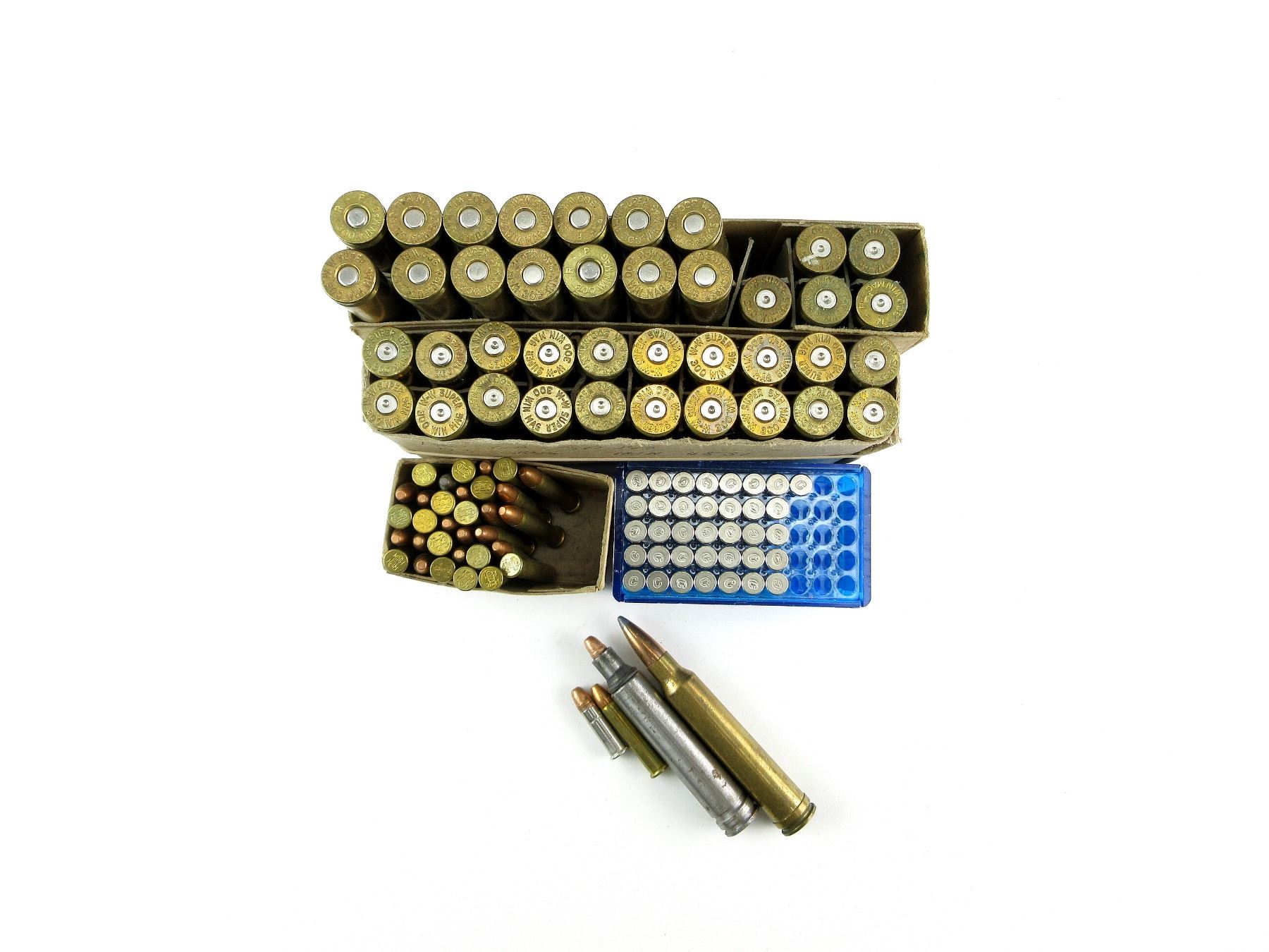 LOT INCLUDES; APPROX. (85) RNDS, (24) NON-PRIMED BRASS CASES, 1 DUMMY RND.
