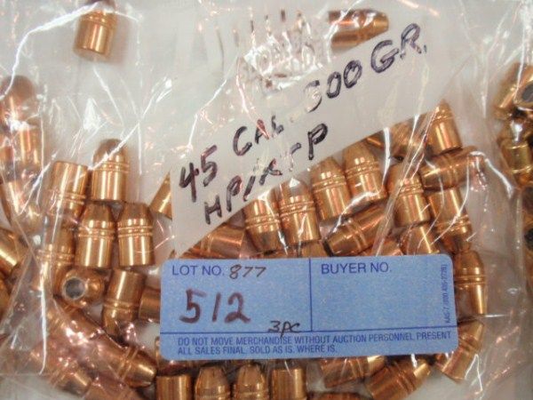 3 BAGS OF 45 CAL COPPER JACKETED BULLETS: 230 GR. JHP, 300 GR. HP/STP, 230 GR. FMU