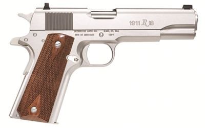 All the features of the 1911 R1, but with the enhanced durability and visual appeal of a stainless steel finish. Features two-dot dovetailed rear sight with single-dot front sight, G.I. thumb safety, grip safety and hammer, and two 7-round magazines.