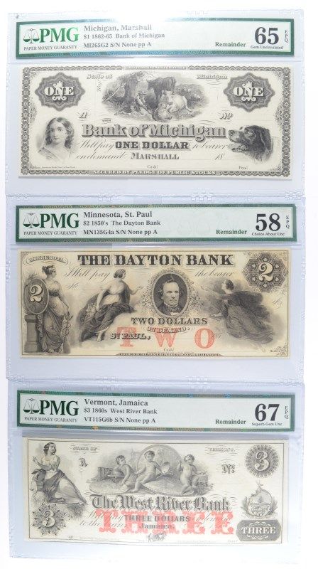 REMAINDER NOTES, PMG GRADED: JAMAICA, VERMONT 67EPQ, ST PAUL, MN 58EPQ;