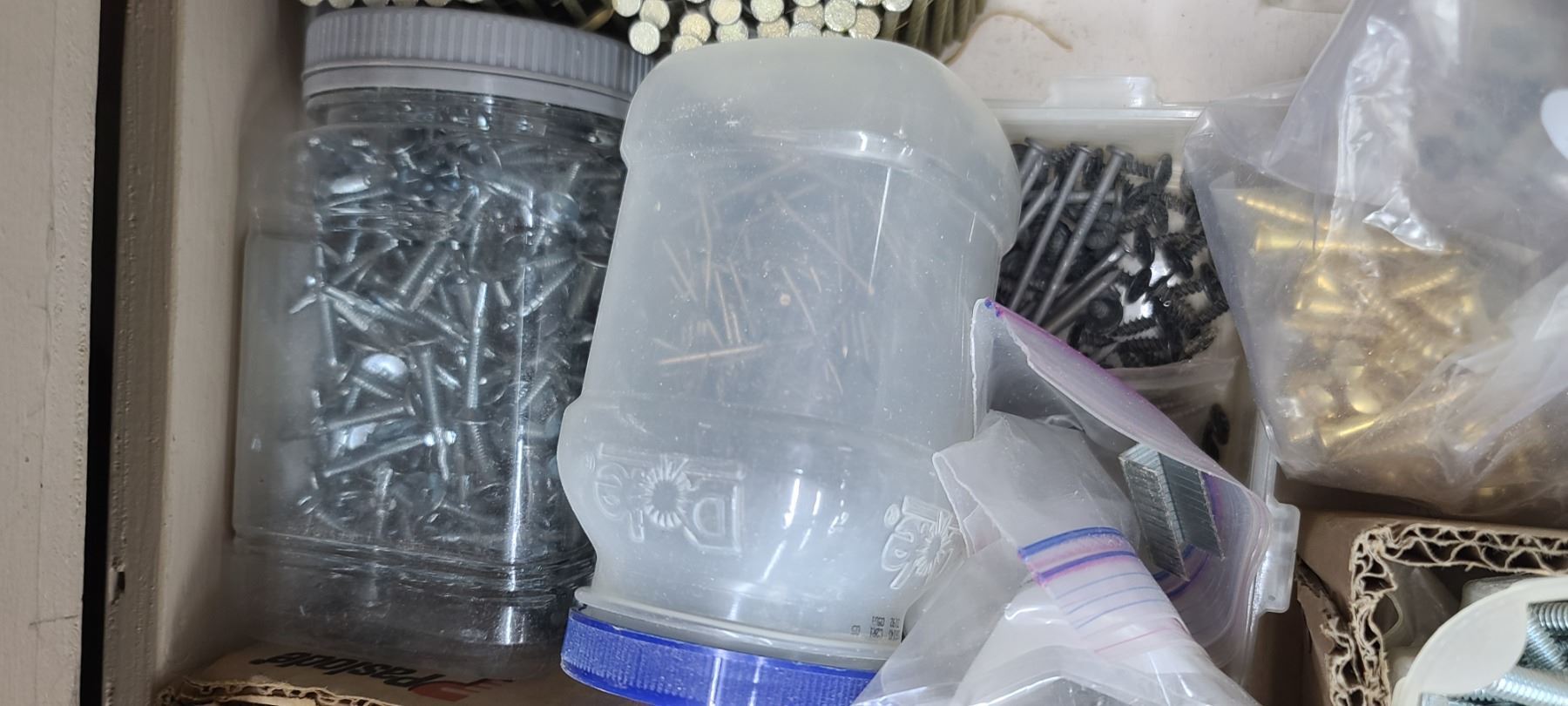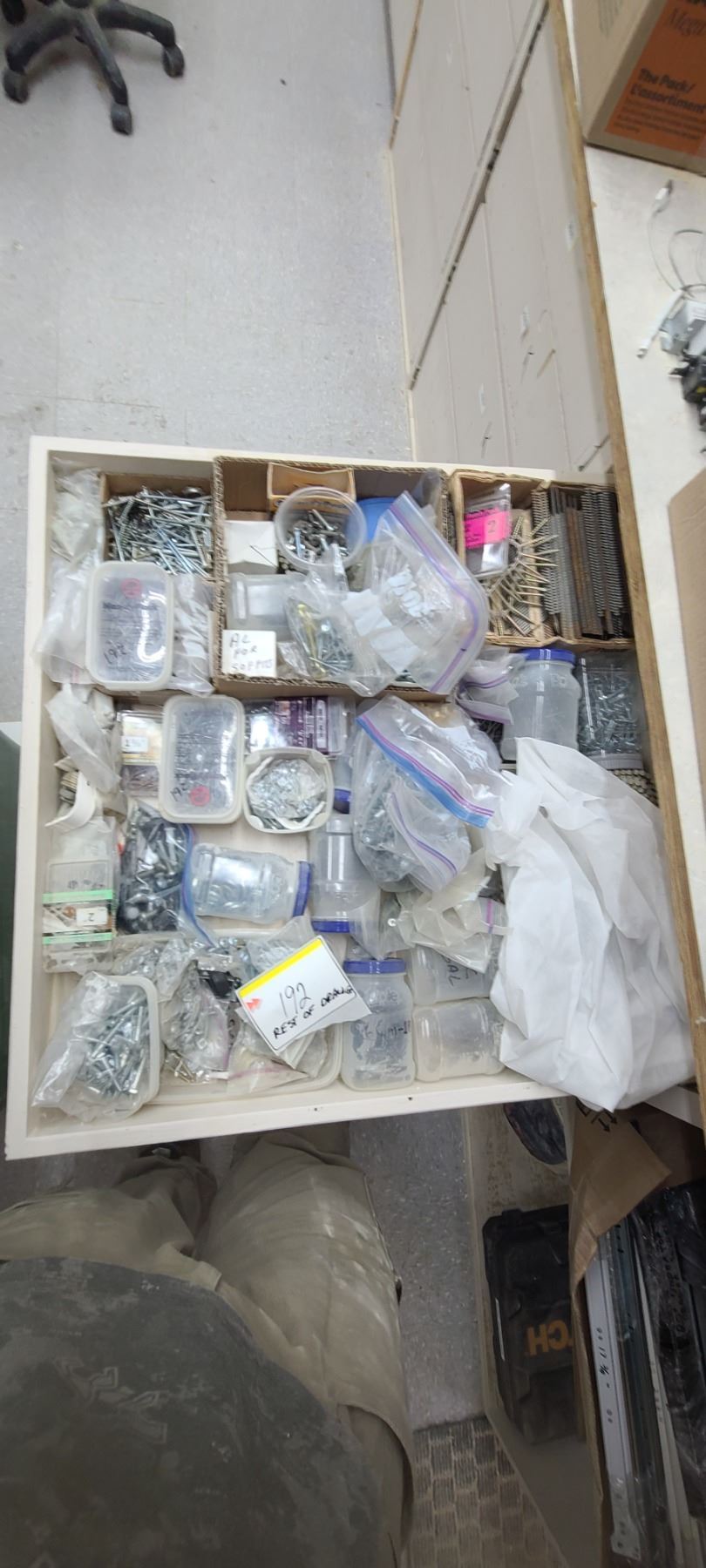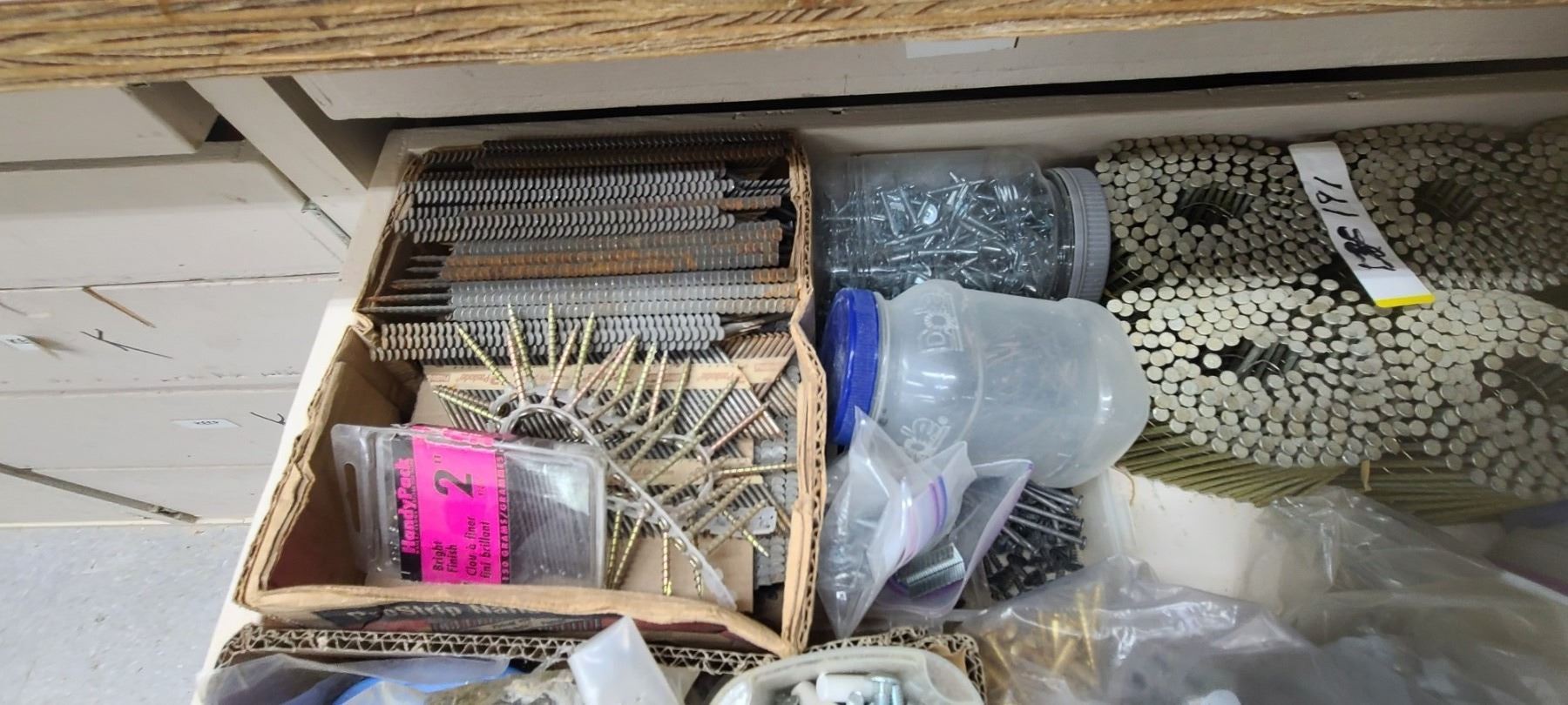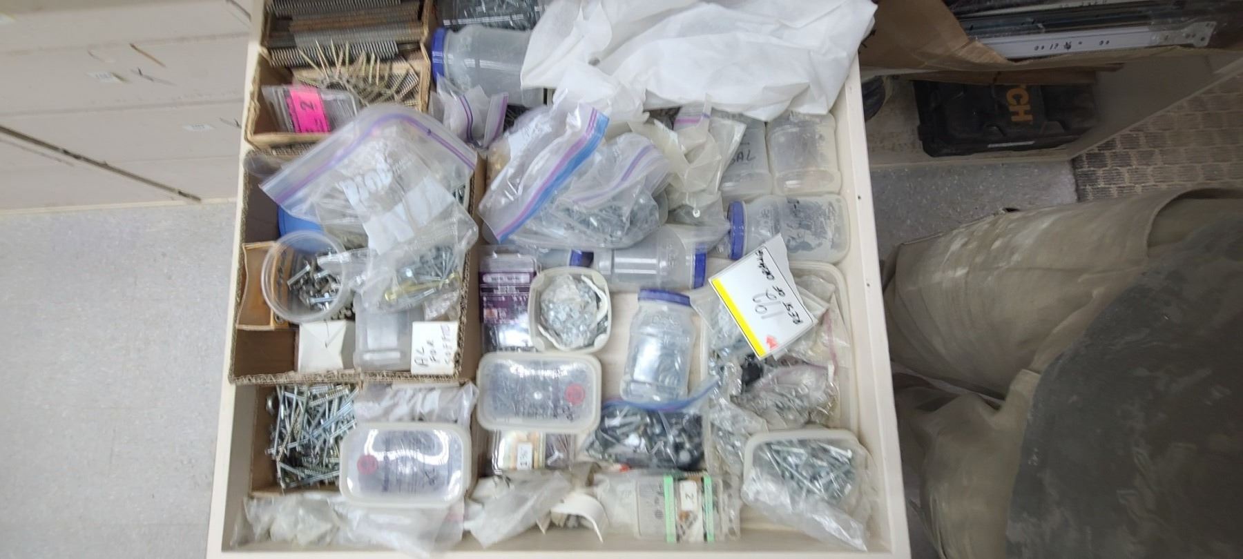 REMAINING CONTENT OF DEAWER - SCREWS - NAILS - BOLTS -