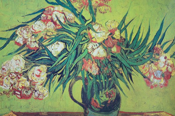 REMARKABLE VINCENT VAN GOGH **|**|** 36X24 INCHES; UNFRAMED; This poster is of Vincent Van Gogh\'s Oleanders. It shows a still-life depicting a vase of oleanders on a table. Also on the table are a couple of books. Vincent van Gogh was a Dutch draughtsman and painter, classified as a Post-Impressionist a pioneer of Expressionism. His famous works include Falling Autumn Leaves, The Starry Night, Portrait of Dr. Gachet, although he is also known for cutting off part of his left ear and for his suicide. The Starry Night is the title given to one of the best known and most reproduced paintings painted while Van Gogh was staying in Arles. If you have any questions please feel free to contact us, it would be to assist you ; MSRP: $0