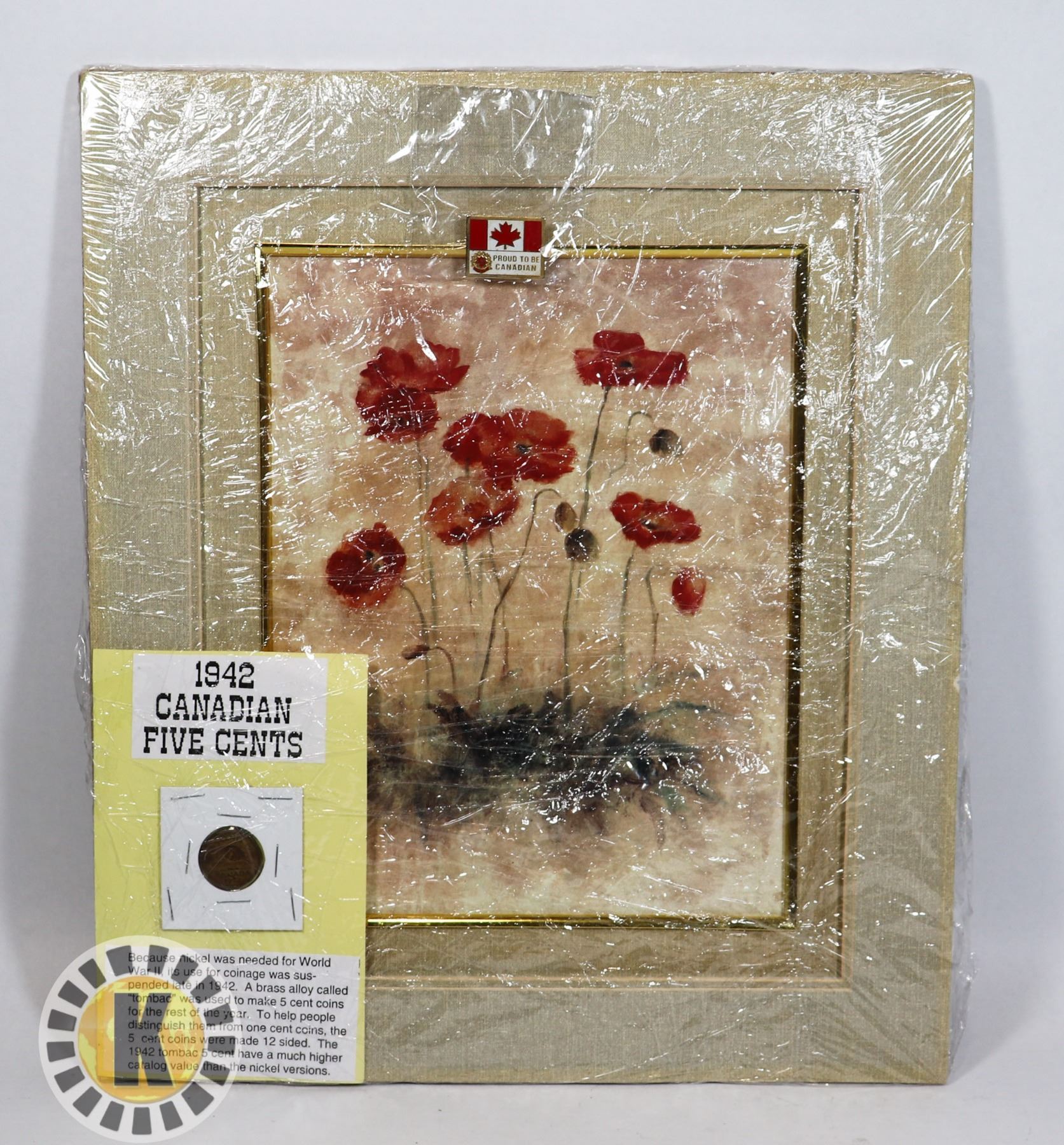 CANADIAN 5 CENT COIN, POPPY ARTWORK, PROUD TO BE CANADIAN PIN***ITEM(S) LOCATED IN LETHBRIDGE ALBERTA. SMALL ITEMS ONLY ARE AVAILABLE FOR FREE TRANSPORT TO EDMONTON OFFICE (READ AUCTION DETAILS FOR MORE INFORMATION)