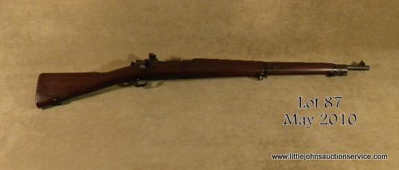 REMINGTON 03-A3, # 3567142, 30/06, parkerized finish, walnut stock. Rifle is in very good plus condition, barrel is dated 4-43 with "RA" and flaming bomb proofs, bore is good showing minor erosion. Stock is very good, showing "FJA"cartouche, crossed cannons, and "P" proofmark, but no "RA". A very nice 03-A3. Est. $300-$600.