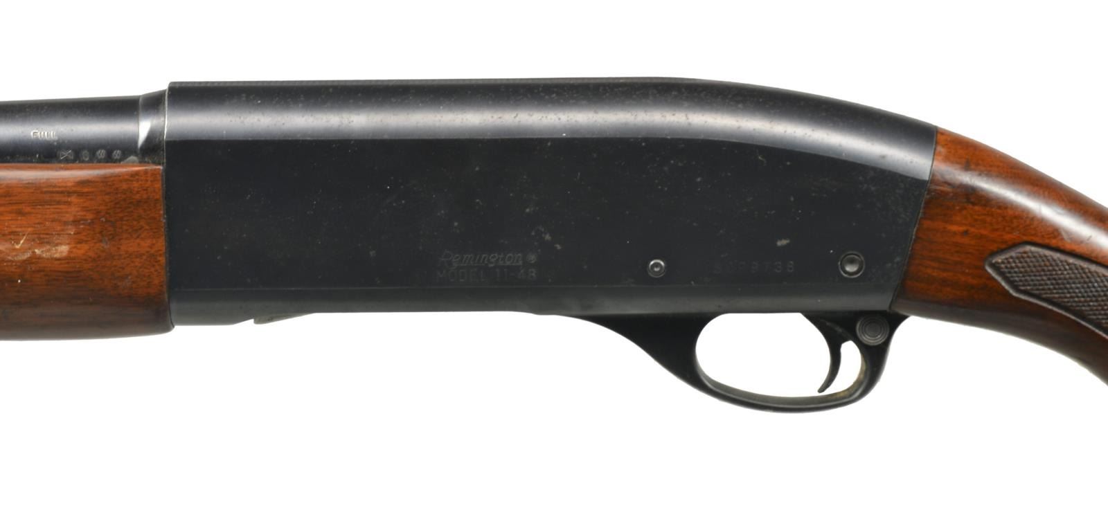 Cal. 12 Ga., 2 3/4". S# 5029738. Bbl. 28" plain w/ steel front bead & fixed Full choke. Walnut forearm & pistol grip stock w/ pressed checkering. Stock has added swivel base w/ LOP: 13 3/4" over aftermarket red ventilated pad. CONDITION: 80% lightly worn blue showing spots of surface corrosion. Wood shows light wear w/ scratches, marks & mildew spots. Bore is generally bright w/ some plastic fouling in choke area. (20-3019/DS). MODERN. $200-300.