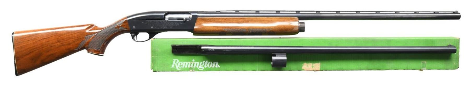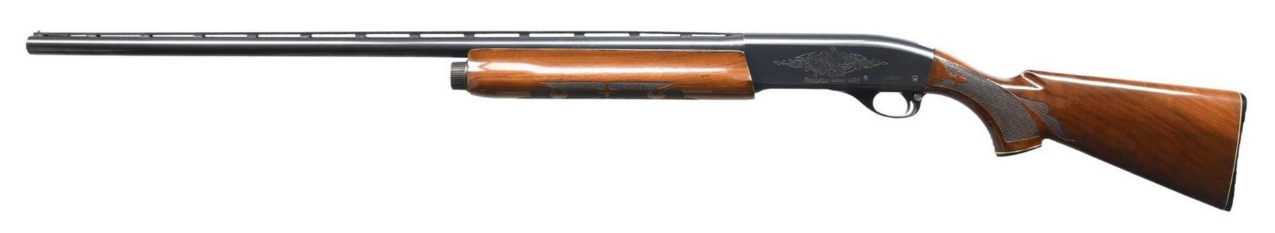 Cal. 12 Ga. 2 3/4". S# 60862V. Bbl. 30" choked full w/ VR. Bead front sight. Blued finish. Checkered walnut pistol grip stock & forend. UNATTACHED ACCESSORIES: 28" plain bbl. choke modified, in very good condition, w/ factory box. CONDITION: all aspects rate very good or better w/ light wear. (23-2501/MJC). MODERN. $500-800.