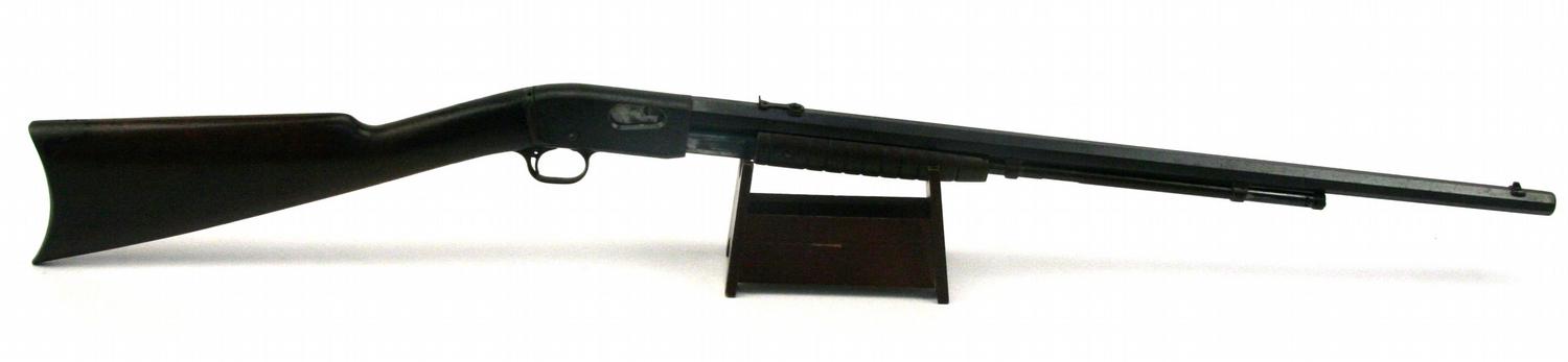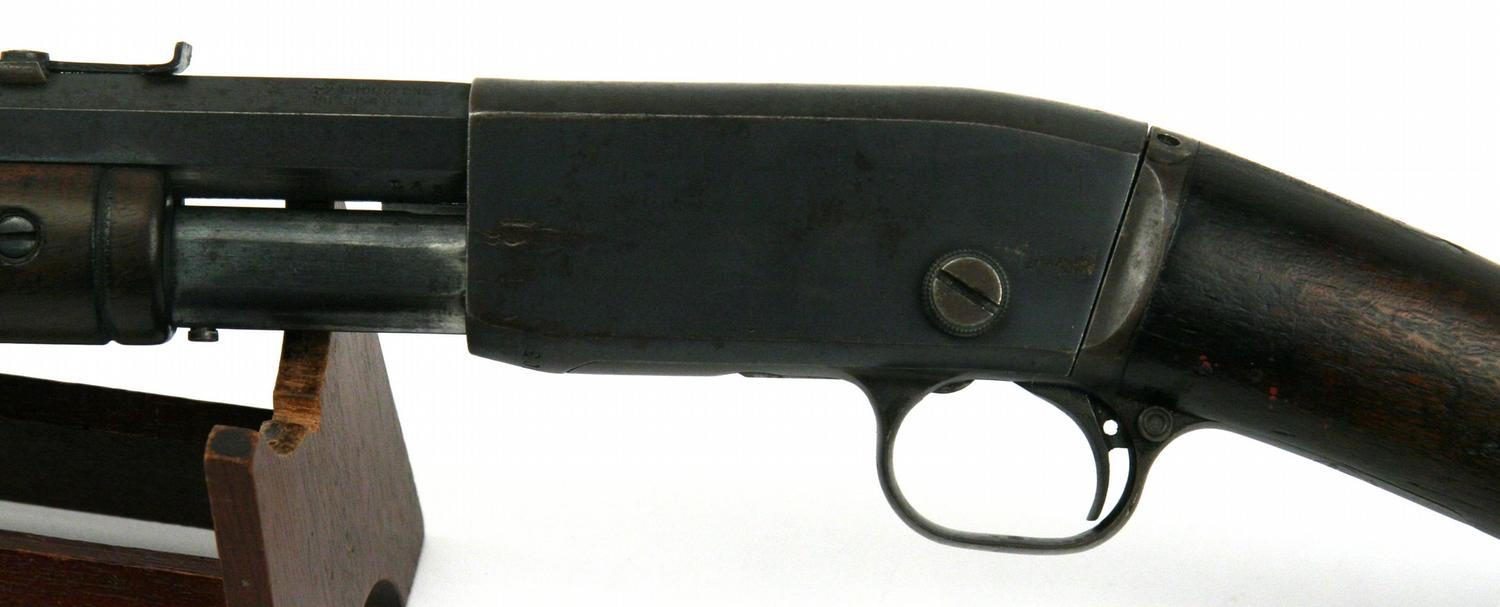 Remington Model 12C pump action .22 rifle. Accepts .22S, .22L, and .22LR. Bore is bright and clean. Finish is about 60%, and stock is very good, with handling marks. Overall goot to very good condition. SN: RW205703