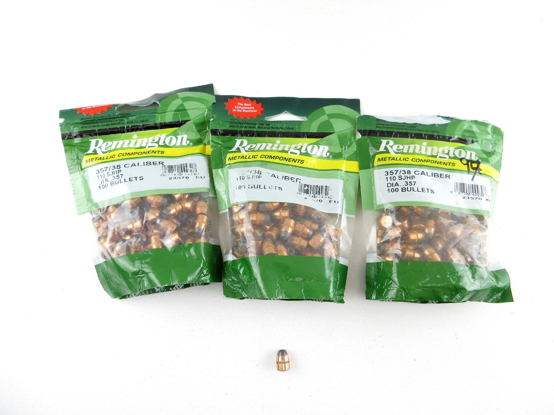 LOT INCLUDES; APPROX. (294) BULLETS, APPROX. DIA .357", 110 GRNS (STATED ON BAGS NOT CONFIRMED) SJHP, (2) UNOPENED.