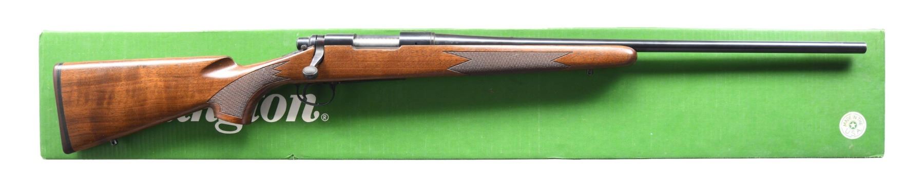 Cal. 22-250 REM. S# A6536589. Bbl. 24" with screw plugged factory tapped holes for bbl sights. No screw plugs in the factory tapped receiver holes. Checkered pistol grip walnut stock set with sling studs and butt pad. UNATTACHED ACCESSORIES: Remington factory box with removed endlabel and handwritten 250/3000. CONDITION: Overall very good with some muzzle wear and minor blemishes. There are a few spots of freckled oxidation on the bbl and reciever. MODERN (24-4326/ZAL) $700-1000