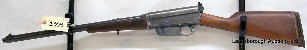 NON-RESTRICTED, SEMI AUTO, 35 REM, 22" BARREL, SN J514. WOOD BUTT STOCK NOT ORIGINAL, BLUING IS GREY AND WORN, BORE VERY GOOD.