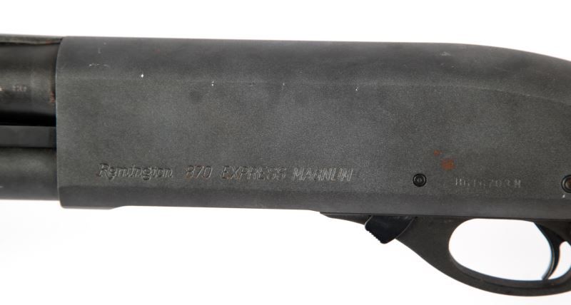 Remington 870 Express Magnum 12 gauge shotgun. 28 inch vent rib barrel chambered for 2 3/4 and 3 inch shells. Matte black finish, with standard wood stock. Good bore, 90% finish, with some handling, and stock is good, with light scuffs. Overall good condition. Also included is 25 inch rifled slug barrel, manufactured by Mossberg, with Bushnell Sportview Scope. Caliber: 12 Gauge Serial #: B616703M