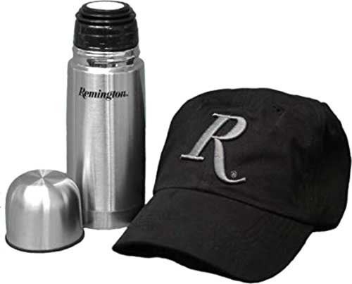 BLACK/SILVER MATERIAL COTTON/TWILL OTHER FEATURES: HAT: 3D EMBROIDERED REMINGTON LOGO BLACK ONE SIZE FITS MOST 6 PANEL UNSTRUCTRED DESIGN SIZE MULTI-FIT TYPE HEADGEAR OTHER FEATURES2: THERMOS: 100% STAINLESS STEEL FDA APPROVED FOOD GRADE INSULATED TO KEEP LIQUIDS COOL OR WARM