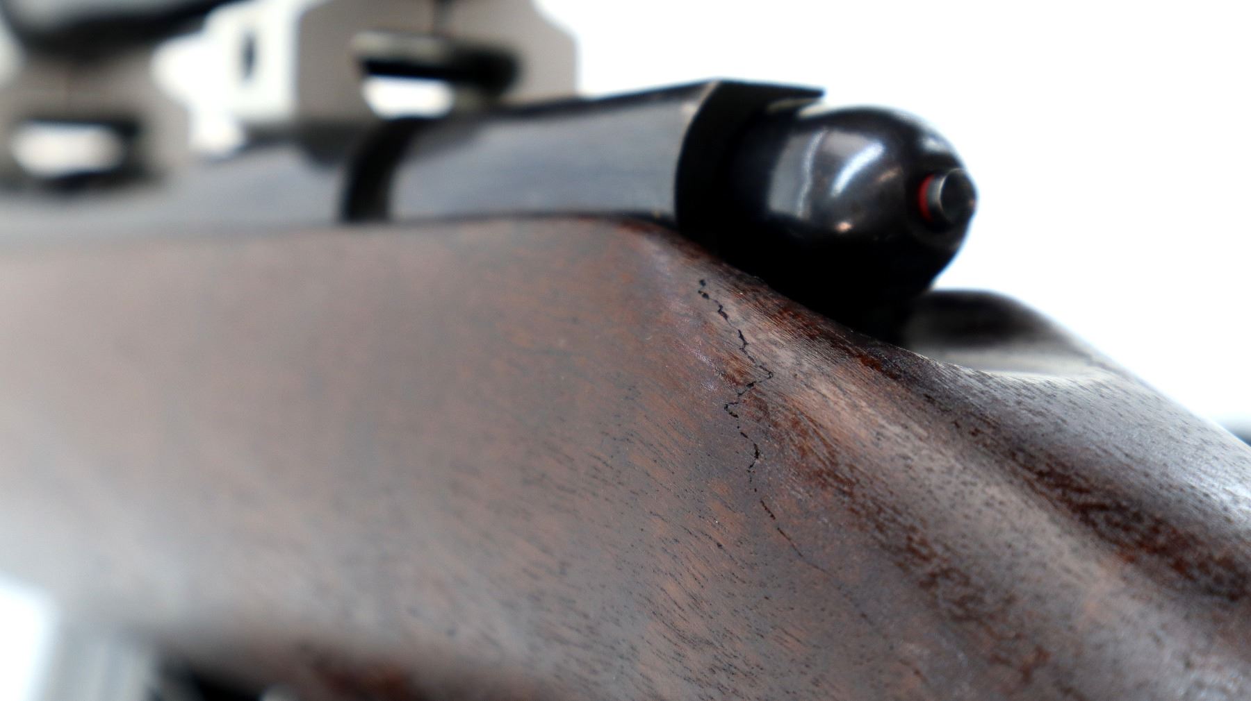 Wear: Metal finish shows some light rust speckles, scratches, handling marks and wear. Stock shows some marks, scratches and wear.